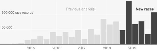 他们统计了2014年4月至2019年12月在数十个国家/地区约577000场马拉松比赛和496000场半程马拉松比赛的结果,以及马拉松跑者们所穿的鞋子。因为在实际的操作中发现Next%和4% 的数据表现差别不大,所以将NEXT% 和4% 的数据进行了合并。