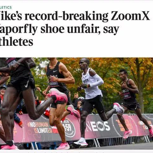 2019年10月份,不少运(dui)动(shou)员(men)坐不住了,他们向国际田联和运动诚信组织投诉,称耐克Zoom Vaporfly跑鞋让马拉松失去了公平竞争。前意大利马拉松冠军 Gianni Demadonna联合其他19名顶尖马拉松高手,联合上书IAAF表示:“耐克的NEXT%跑鞋能让马拉松精英选手快2分钟,如今马拉松的成绩变得太快了,甚至很多老人穿着它,都不断创造PB。”