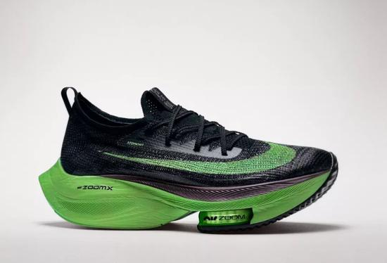 于是,耐克为了角力东京奥运会,抢先发布了新一代跑鞋 Alphafly NEXT%,它只有一块碳板,而不是基普乔格破2时穿的三块,相比NEXT%,Alphafly的碳板的硬度有所增强,Alphafly中底的更大更厚的,中底为39.5毫米,全部符合了田联的新规则。