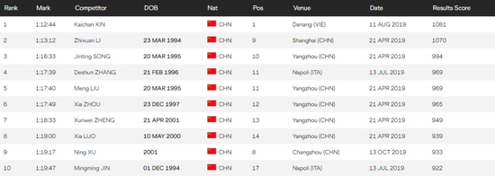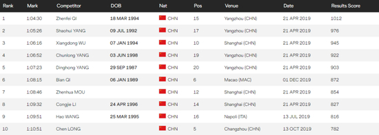 2019年中国马拉松、半程马拉松最快的10位跑者