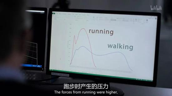 随后,电脑会分析走路和跑步时膝盖产生的压力。
