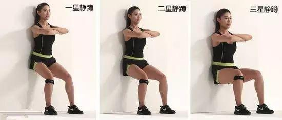 下图是靠墙静蹲的几个动作,难度由低到高,此动作将最大化的加固你的膝关节!