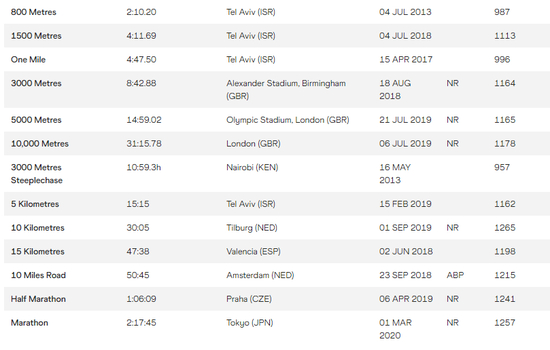 2019年,在布拉格的半程比赛中,她跑出了个人半马PB1:06:09,同样是在布拉格举行的全程马拉松比赛中,跑出了2:19:46,如今在东京,再上一层,进入世界上为数不多的女子218队列。