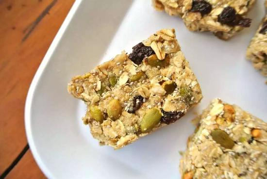 如果背靠背的日程安排意味着你无法坐下来用餐,那么随手一根特别添加纤维和蛋白质的高卡路里能量棒就是最好的选择。它应该包含350到500卡路里、9克或更多蛋白质、高纤维碳水化合物,例如种子、燕麦、和干果。你也需要一些健康的脂肪(例如坚果),”柯里斯汀,医学博士,营养与饮食学院发言人,“可以帮助你更有效地吸收维生素,让你感到满意。”