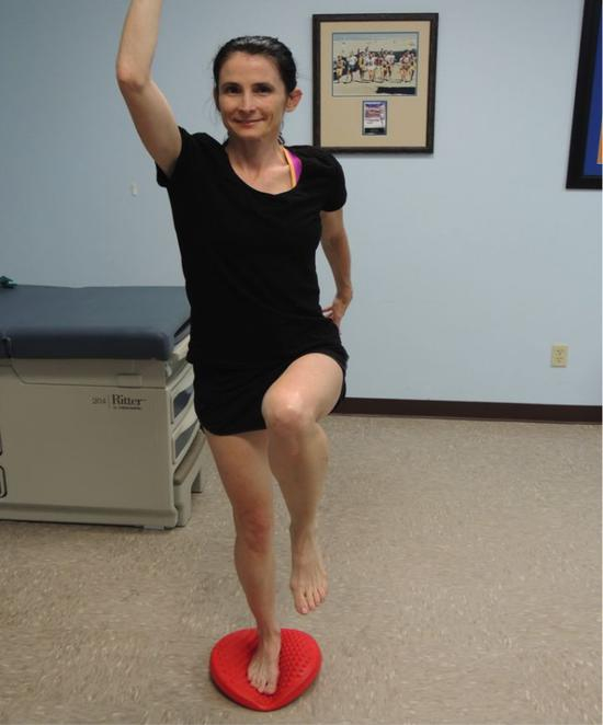 单腿站立,然后提膝,摆臂,呈跑步姿势,保持30秒,换腿,继续保持30秒。如果觉得很轻松,可以增加难度,在脚底放一个让你不平衡的垫子。