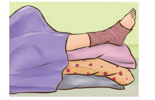 “E” (elevation),即晚上睡觉时用被子将脚抬高,要求高于心脏平面,这一措施可以促进血液及组织液回流,减轻肿胀。