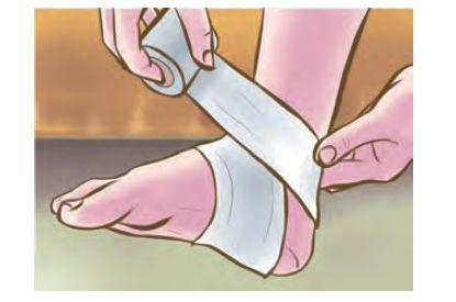 “C”(compression),就是对伤处进行加压包扎,做过冰敷就可以进行包扎,包扎可以压迫止血、减少出血和肿胀,同时也可起到稳定脚踝、减轻疼痛的作用。