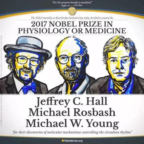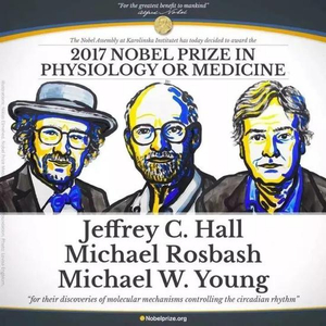 获得2017诺贝尔生理学和医学奖的三位美国遗传学家:Jeffrey C.Hall,Michael Rosbash和Michael W.Young,因为“发现控制生命昼夜节律的分子机制”而获奖,这一项研究揭示了为何植物、动物和人类能够适应这种节律,从而与地球的运动规律相适应。