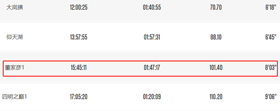 之后从CP赤水翻身到CP大岚镇、再到CP仰天湖的赛道,他的配速虽然有所下降但也未跌入7分速度。