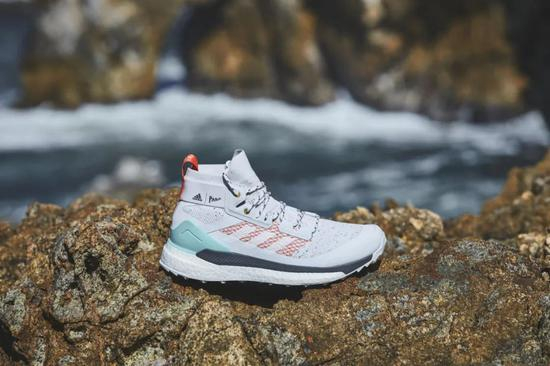 这几年,阿迪达斯都会联手Parley打造了Ultra Boost的合作款,并推出了跑出蔚蓝系列主题跑,今年双方的合作还在继续,其中在户外线上,adidasTERREX首次以FREE HIKER系列携手Parley ,推出专业户外徒步鞋TERREX Free Hiker Parley,原本会流入海洋的沙滩塑料回收后经特殊工艺转换为Parley Ocean Plastic™纱线,进而制成包含PRIMEKNIT材料在内的鞋面、鞋带,最终塑造出一双环保徒步鞋。