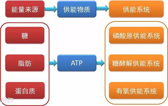 这里的三大供能系统,不是指糖、脂肪、蛋白质,他们是供能物质而非供能系统,我们要说的供能系统是根据ATP合成速度的快慢来划分,这三大供能系统分别是:磷酸原系统、糖酵解系统、有氧供能系统。