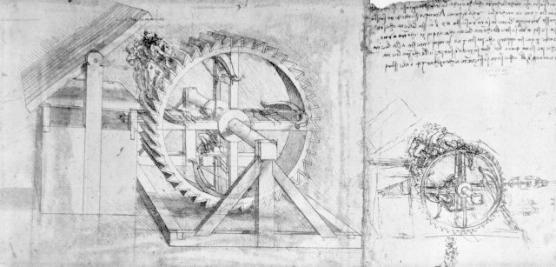 一份来自奇才达芬奇十五世纪的手稿中就有踏车的身影。