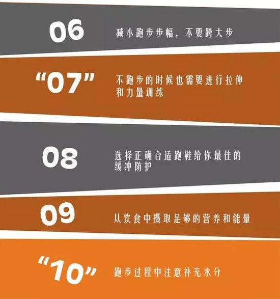 大部分损伤原因无非是跑得太快太急或是训练过度,如果能严格遵守“循序渐进”原则,加上对跑步技术和装备的重视,其实跑者受到伤病困扰的几率就大大降低。