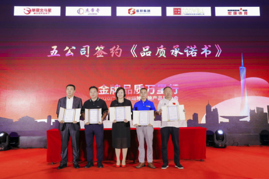 随后, 在全场220多位嘉宾的注视下,五家主办单位公司领导人一同上台签署《品质承诺书》,以实际行动宣布:竭力捍卫品牌品质、品牌荣誉,坚守质量的底线决不动摇!向广东体育设施建设行业保证保质,等于立下军令状,决心为广东省体育场地设施基础建设贡献一份力量。