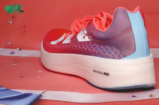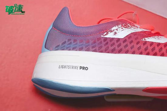 在adizero Pro的中底设计上,阿迪使用了Lightstrike和Boost的混合中底材料, adios 5也采用了这样的中底组合,而在adizero adios Pro上,Boost中底被舍弃,它只采用了全新升级的LightstrikePRO泡沫材料,这种泡沫材料具有更轻,更具回弹的特性,为穿着者提供最大的缓冲和更多的能量存储和回弹缓冲,同时能够帮助运动员长时间奔跑时保持速度。