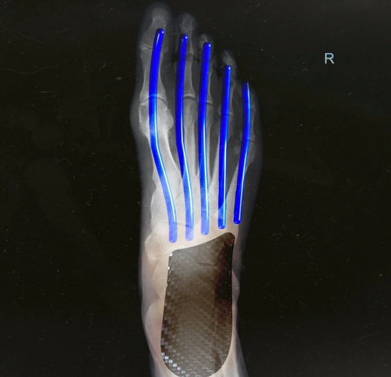adizero adios Pro跑鞋中底同时搭载了尼龙和碳纤维后跟结合的EnergyRods科技,以维持踝关节的稳定性,使跑者的跑步行程更为流畅。EnergyRods技术由5个碳纤维支撑条组成,模拟脚的跖骨,帮助跑步者更长时间的保持他们的速度,优化跑步过程的能耗。这也意味着该鞋款能够保护跑者身体受到的冲击力更小,以达到马拉松完赛更快恢复的目的。