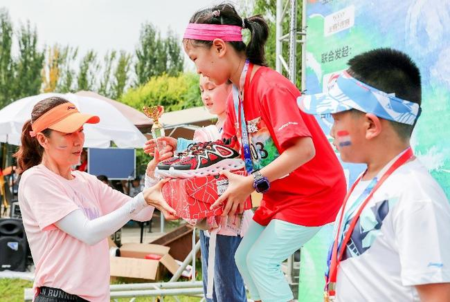经过激烈较量,“小王者”挑战赛优胜者冲线!奥运冠军王丽萍亲自为获得本届“小王者”挑战赛的优胜小选手们颁发定制奖牌,并送出李宁YOUNG新上市的李宁弧跑鞋作为少年组冠军奖品。