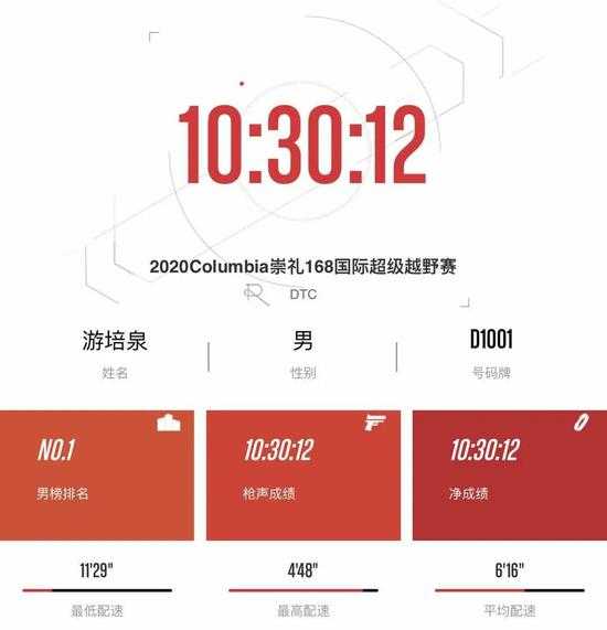 5月30日,游培泉曾在镇江发起一个100K的拉练,想要6小时40分跑完,但淋了一天的雨,跑了70多公里选择了放弃。今天,游培泉拿到崇礼168DTC组的冠军,取得下半年的开门红,祝贺他!