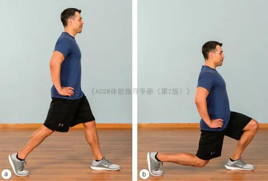 2。抬起左腿,向前摆动(在身体前面)(a),向后摆动(在身体后面)(b)。