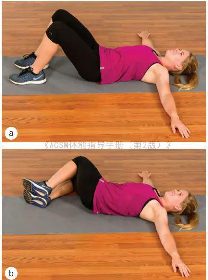 1。仰卧在地板上, 弯曲膝盖,双脚平放在地板上。