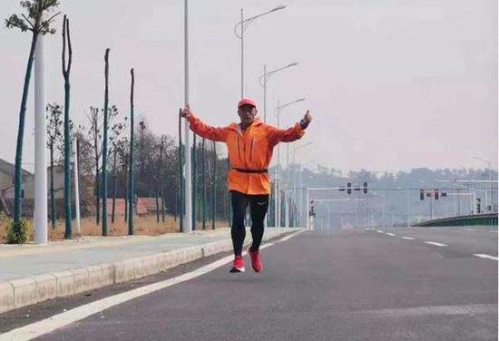 他敢挑战这么“高难度”,是因为早就有过类似成功经验。2016年8月15日,他让刚刚从部队退伍的儿子驾车跟在自己后面,从南陵青弋江畔出发,沿着318国道,历时8天跑到上海青浦枇杷园;2016年9月6日,他从上海七宝镇出发,历时38天穿越1400多公里跑步进京;2016年12月4日至12月11日,他又从北京八达岭长城跑到内蒙古自治区乌兰察布市兴和县,行程200多公里。