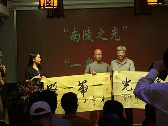 图说:意象画派创始人为“万里中国跑”题字助威。