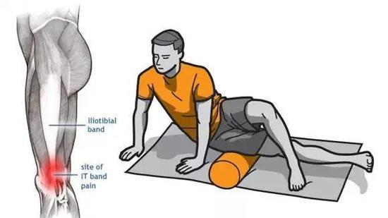 可以对髂胫束进行拉伸或者滚泡沫轴,可以较好地缓解疼痛。
