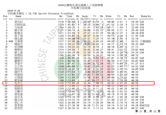 这个铁三的半程项目,包括游泳0.75公里、骑行20公里、路跑5公里。最终马英九以2小时12分06秒的成绩完赛,其中游泳用时33分44秒、骑行用时46分52秒,5公里跑步用时40分56秒。