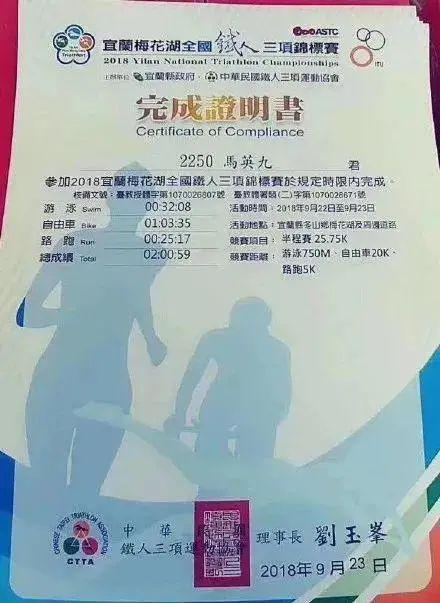 不知道这次看到跑步成绩,他作何感想。但无论如何,能在70岁的高龄依然挑战铁三赛事,可见马英九依然保持着较高的运动水准。