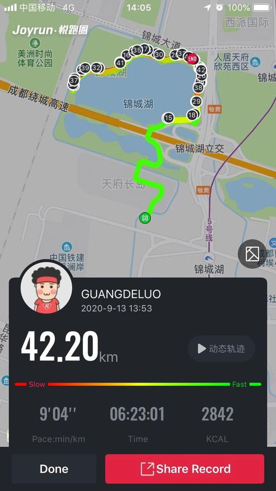 正式比赛前,罗老在公园先试了个半马,他甚至都没告诉家人,就想看看能否hold住。“我就绕着公园跑道,一直跑了五十多圈,花了2小时50多分钟的样子。跑完后腿有点痛,但还能接受。”