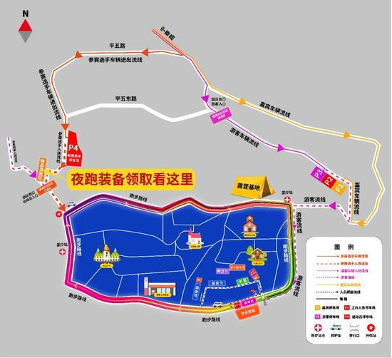 2、发放地点:玫瑰情园西门向北80米处(详见下图)选手在P4停车场停车后,步行即可到达。