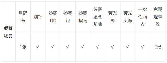(3)参赛物品领取流程:选手持本人身份证原件、本人签名的《报名确认函》到号码对应的窗口排队→提交领物相关资料,核对个人信息→志愿者核对信息无误后发放对应项目物品→选手确认签字→选手完成领取参赛物品。