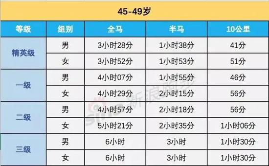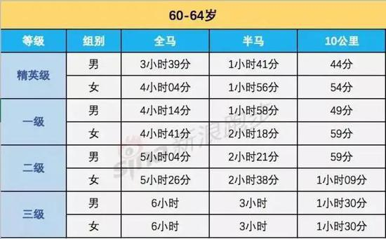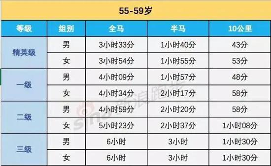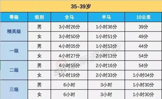全马半马10公里等级标准 最全马拉松完赛配速表