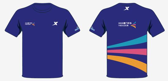 ↑ 同时,我们也把整体视觉运用在T恤款式的参赛服上,并将海浪形状做个性化处理融入到参赛服中。赛事服装由特步服装赞助。