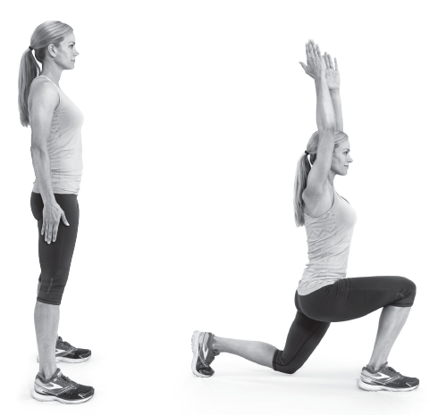 2、左腿抬离地面。膝盖不要超过脚尖。重复。