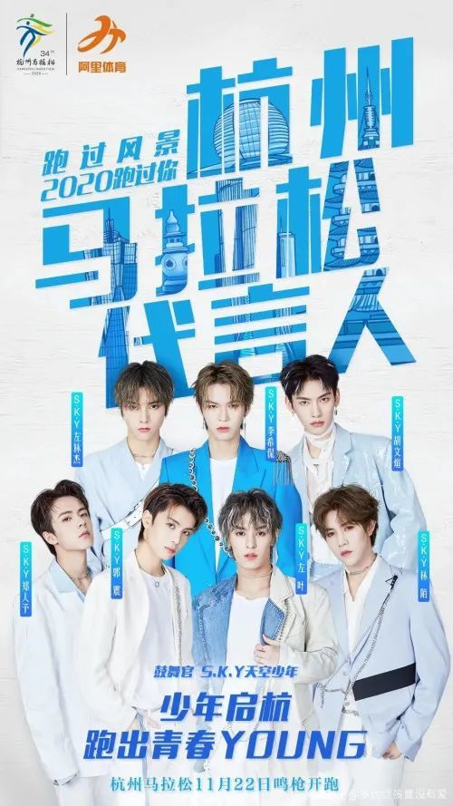 作为在跑圈中少数几个受到追捧的马拉松赛事,11月2日,杭州马拉松官宣代言人——S.K.Y天空少年。