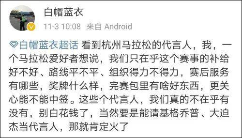 然而,杭马官宣的代言人却引发了大面积吐槽,不少马拉松运动爱好者都表示不能接受。