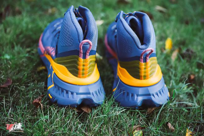 从外形上来看,TenNine Hike GTX 与此前的TenNine越野鞋保持了相同的设计思路,大厚底+夸张的后跟,在稳定性和缓震性上得到了延续。而作为一双主打徒步的鞋子,TenNine Hike GTX 加高了鞋领的,能够包裹住脚踝,在山地上,也不用担心石头碰伤脚踝。