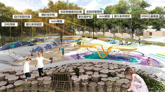 跑马大本营将面向游客提供“冬奥公园——跑马大本营——一键智慧游”服务,依托永定河沿岸的优秀山水绿地资源,建设面积约0.5公顷的儿童活动区,包括林荫攀岩、乐彩智慧音乐阶梯,沙坑滑梯、小型儿童赛道等,利用“声”“光”“色”等科技手段为游客提供全新的出游体验。
