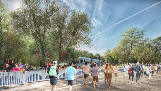 该项目将拆除各公园围墙,实现互联互通,“缝合”永定河沿线的公共绿地空间,构建永定河绿道慢行系统,成为串联莲石湖公园、永定河休闲森林公园、首钢工业遗址公园和高井沟入河口公园的纽带,打造封闭、安全、独特、体验丰富的全马路线,这也是北京冬季奥林匹克公园的亮点之一。