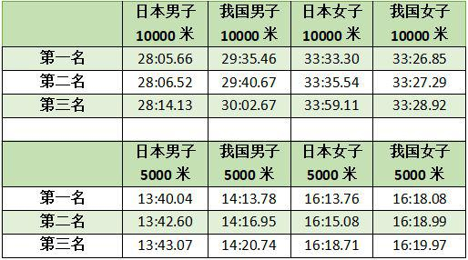 2020我国田径锦标赛与2020日本大学生田径锦标赛中长跑成绩对比