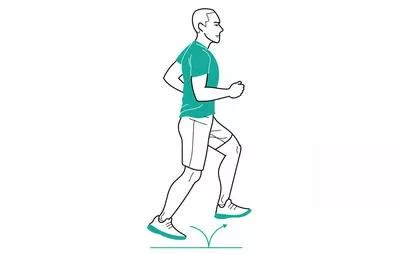 慢跑时脚踝背屈,保持小步幅,双脚贴近地面,就像是跑过8cm高的障碍物那样。然后,假设障碍物升高到15cm和20cm,做同样的脚踝背屈慢跑。