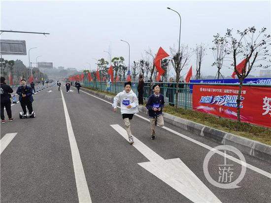 “预备!跑!”12月23日上午,随着一声令下,重庆市茄子溪中学“逐梦启航,为成功奔跑吧”第三届微型马拉松比赛,在大渡口区壹号公路正式开跑,同学们你追我赶,在寒冷的冬日里跑出了一道“火热”的风景线。来自高三二班的女生卿炜琪在女子组3公里比赛中,获得了第一名,这是她连续第三年拿到这个比赛的第一名。
