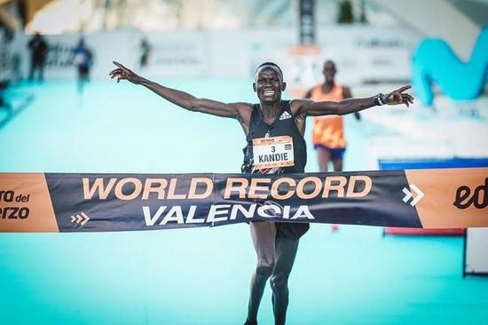 2020年12月9日,在瓦伦西亚半程马拉松比赛中,男子半马组前4名的选手全部打破了世界纪录,冠军肯尼亚选手基比沃特·坎迪更是以57分32秒的成绩将男子半程马拉松纪录提高了整整29秒。