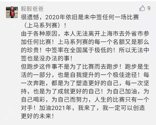 2020年无锡马拉松,杨定宏跑出了02:15:42的成绩。
