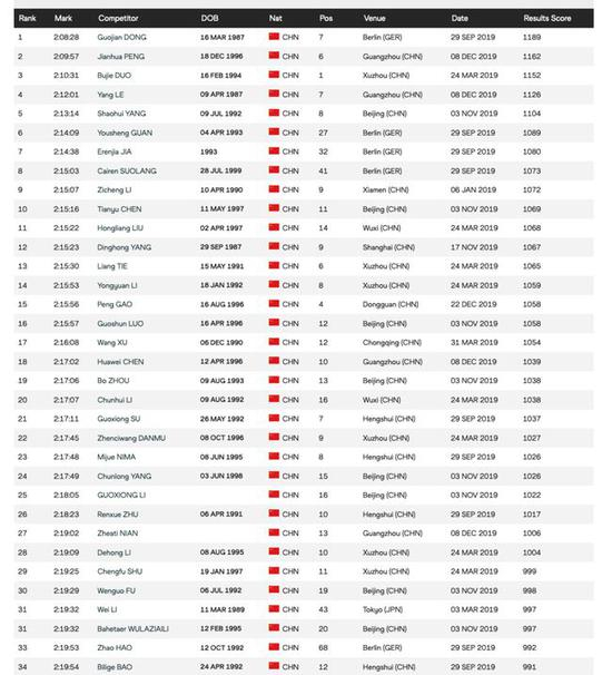 2020年厦门马拉松是国内首场金标赛事,35071人参赛也让厦马成为今年国内最大规模的一场赛事。获得2020厦马参赛资格的中国籍(不含港、澳、台)男子选手成绩在2:30:00以内共56人。