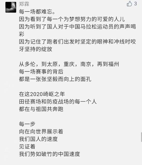 这场比赛,给当下的中国马拉松带来久违的血性和感动,让国人看到了马拉松重启之后的强势迸发,也燃起了中国马拉松更为强烈的奥运渴望。