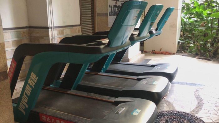 而为了核实焦先生反映的情况,体育健康特搜组记者也来到了焦先生所在的皇御苑小区,在现场,记者发现放置在19栋一楼的几台共享跑步机上已经落满了厚厚的灰尘,明显搁置很久无人使用。