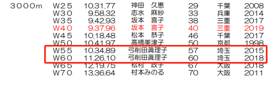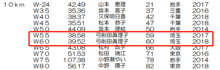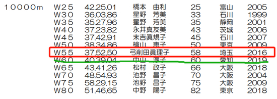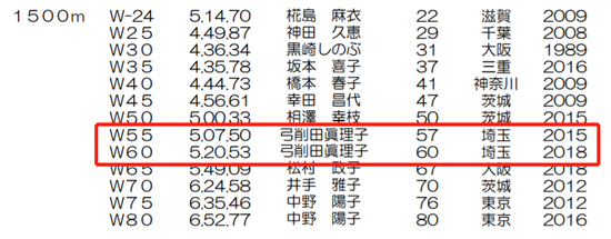 此外,她还保持日本多项1500米、3000米、5000米和万米的年龄组国家纪录。
