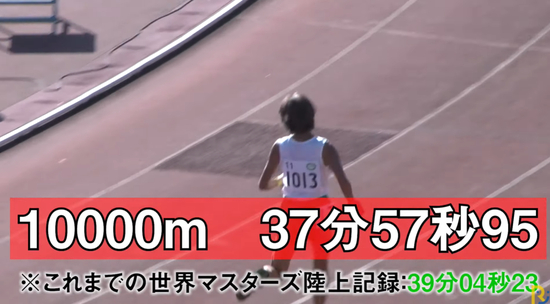11月14日第11届东京老年田径纪录会,10000米,共有15人参赛,真理子是唯一一位女选手,最终跑出了37分57秒95的成绩,将60岁以上女子万米世界纪录提升了1分多钟!